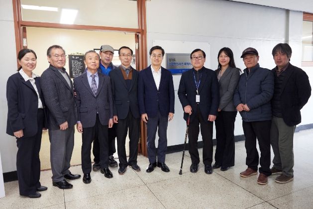 김 지사는 28일 경기도청 구청사 구관 3층으로 자리를 옮긴 선감학원사건 피해자지원센터를 둘러보고 김영배 센터장(선감학원아동피해대책협의회장) 등 피해자들과 환담을 나눴다.
