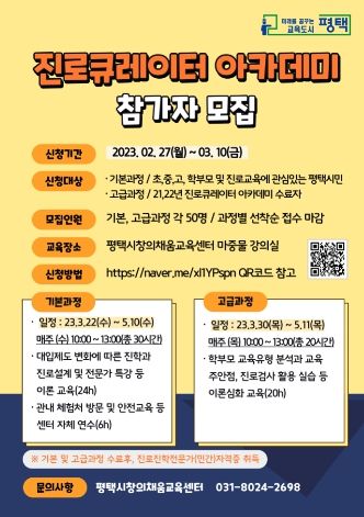 (플러스인뉴스) 평택시는 오는 3월 진로교육에 관심 있는 평택시민 100명을 대상으로 '진로큐레이터 아카데미'를 운영한다.