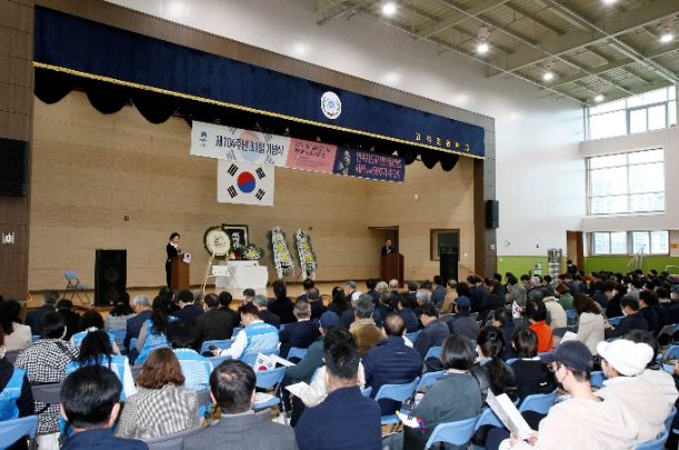 (플러스인뉴스) 제104주년 3.1절 기념식 및 민세 안재홍 선생 서세(逝世) 58주기 추모식이 지난 1일 고덕초등학교 체육관에서 개최됐다.