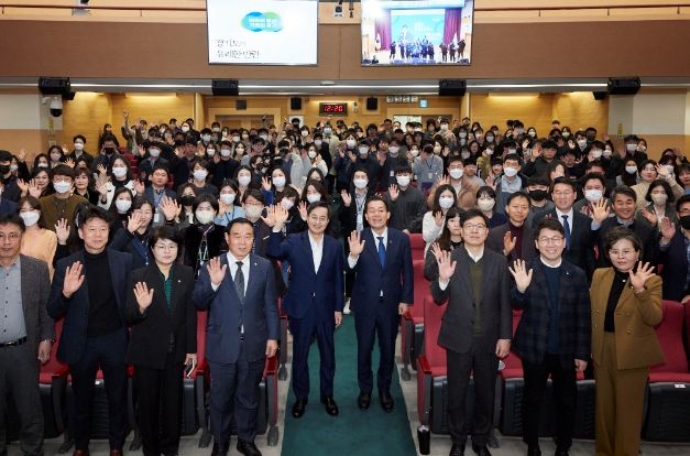 김동연 지사는 2일 수원시청 대강당에서 제5회 ‘도·시군 합동 타운홀미팅 민생현장 맞손토크’를 열고 수원시 공무원 350여 명을 대상으로 ‘유쾌한 반란’을 주제로 공직자로서의 철학과 자세에 대해 특강을 했다.