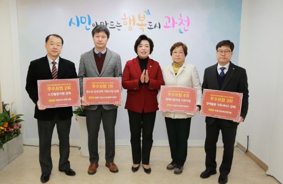 2022년 우수사업 수행기관은 과천시청소년상담복지센터(청소년 진로진학 지원사업 강화), 과천시노인복지관(노인활동 지원 강화), 과천시장애인복지관(장애돌봄 가족서비스 강화), 과천시여성비전센터(경력 단절 여성 지원사업) 등 4곳이다.