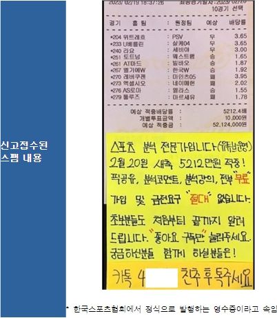 구체적인 방법을 보면 해당 광고를 본 청소년들에게 모바일 메신저(카카오톡) 아이디(ID)로 친구 등록하도록 한 후 광고문자 문구와 전송 방법을 알려주고, 다량의 휴대전화 번호를 전달해 1일 약 490여 건의 불법 도박스팸 문자 전송을 지시하는 것으로 파악됐다. 참고로 이동통신사는 스팸방지 대책의 일환으로 개인이 하루에 보낼 수 있는 문자 건수를 500개로 제한하고 있다.