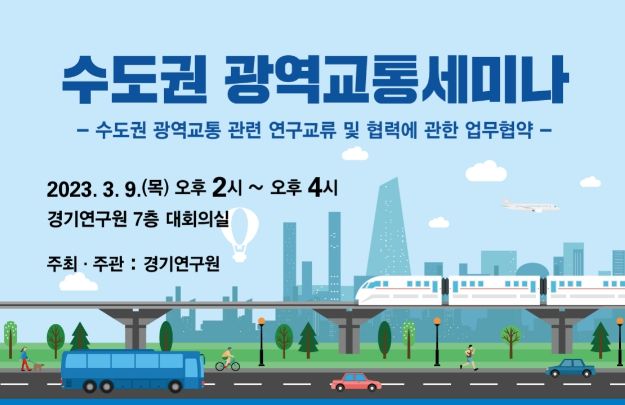 (플러스인뉴스) 경기연구원이 오는 9일 오후 2시 경기연구원 7층 대회의실에서 ‘수도권 광역교통 세미나’를 개최한다.