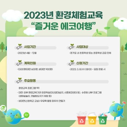 (플러스인뉴스) 경기도청소년수련원이 지역 체험 중심 환경교육 프로그램 ‘즐거운 에코여행’ 참가 단체를 모집한다.