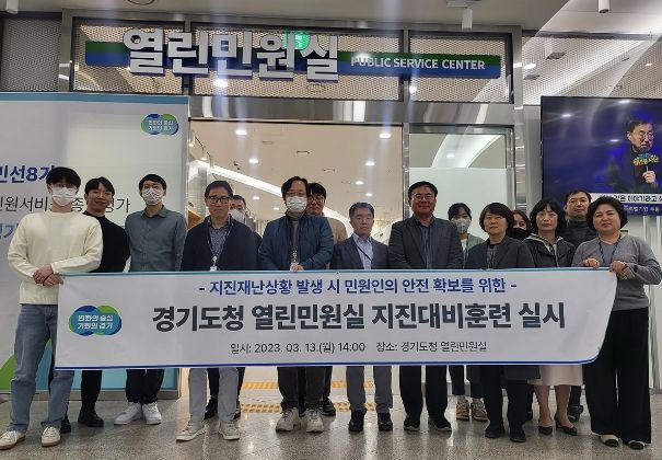 (플러스인뉴스) 경기도는 13일 경기도청 열린민원실을 방문하는 민원인의 안전을 보장하기 위해 열린민원실 직원 20여 명을 대상으로 지진대비훈련을 실시했다.