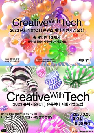 공모 지원사업을 보면 ‘문화기술 콘텐츠 제작 지원’은 경기도내 문화기술 기업의 콘텐츠 제작을 통한 시장발굴 및 시장진출을 목적으로, 도내 문화기술 기업 13개 사에 총 9억 원을 지원한다.