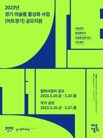 (플러스인뉴스) 경기도와 경기문화재단(대표이사 유인택)은 예술인의 지속적인 창작활동과 미술시장 활성화를 위한 ‘2023년 경기 미술품 활성화 사업(아트경기)’에 참여할 경기도 시각예술분야 작가와 미술품 전문사업자를 공모한다.