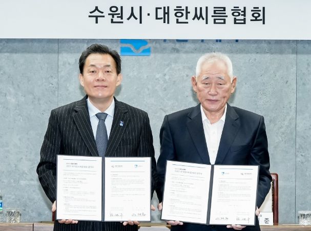 이날 협약식에는 이재준 수원특례시장, 황경수 대한씨름협회장, 이춘희 수원시씨름협회장, 수원특례시청 씨름단 이충엽 감독 등이 참석했다.