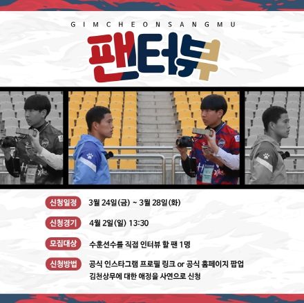 (플러스인뉴스) 김천상무프로축구단이 프로 선수단을 직접 인터뷰할 팬을 모집한다.