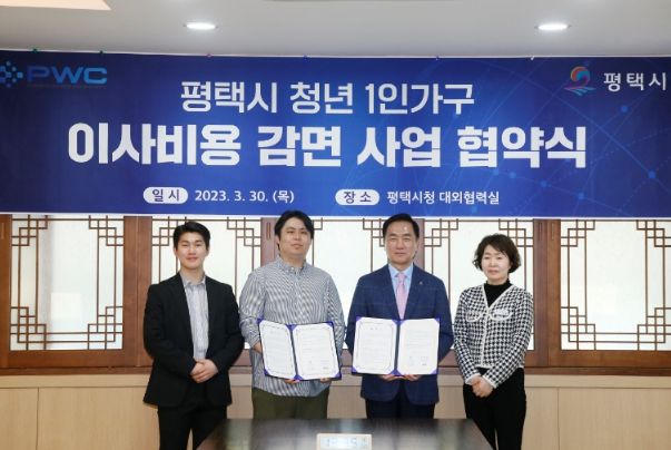 (플러스인뉴스) 평택시는 청년의 주거비 부담을 덜어주기 위해 30일 PWC청년물류기업과 청년 1인 가구 이사비용 감면 사업 업무협약을 체결했다.