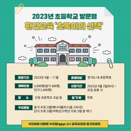 (플러스인뉴스) 경기도청소년수련원이 학교를 방문해 환경교육을 하는 ‘초록이의 선택’ 참가 단체를 3일부터 모집한다.