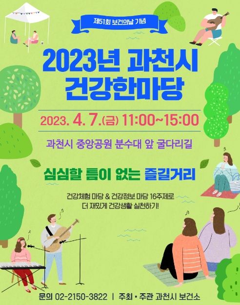 (플러스인뉴스) 과천시 보건소는 ‘제51회 보건의 날’을 맞아 오는 7일 중앙공원(별양동) 굴다리길 일대에서 ‘2023년 과천시 건강한마당’ 행사를 연다고 5일 밝혔다.