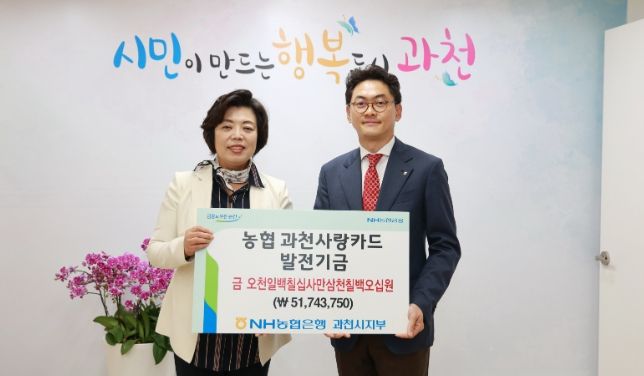 (플러스인뉴스) 과천시는 18일 NH농협은행 과천시지부로부터 지난해 법인카드 사용으로 발생한 적립포인트를 환산한 기금 5천 2백여만 원을 전달받았다.