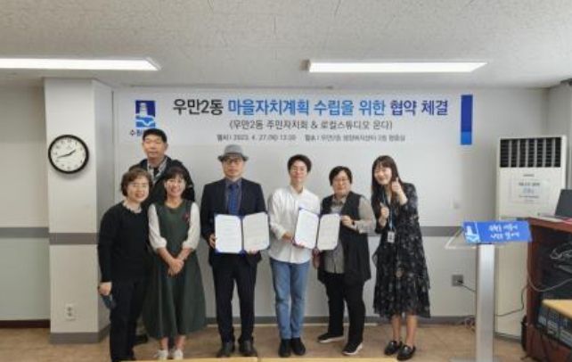 (플러스인뉴스) 우만2동 주민자치회는 ‘2023년 마을만들기 주민제안 공모사업’ 활동의 첫걸음으로 마을자치활동 전문가 그룹 ‘로컬스튜디오 온다’와 마을자치계획 수립을 위한 업무협약을 체결했다고 27일 밝혔다.