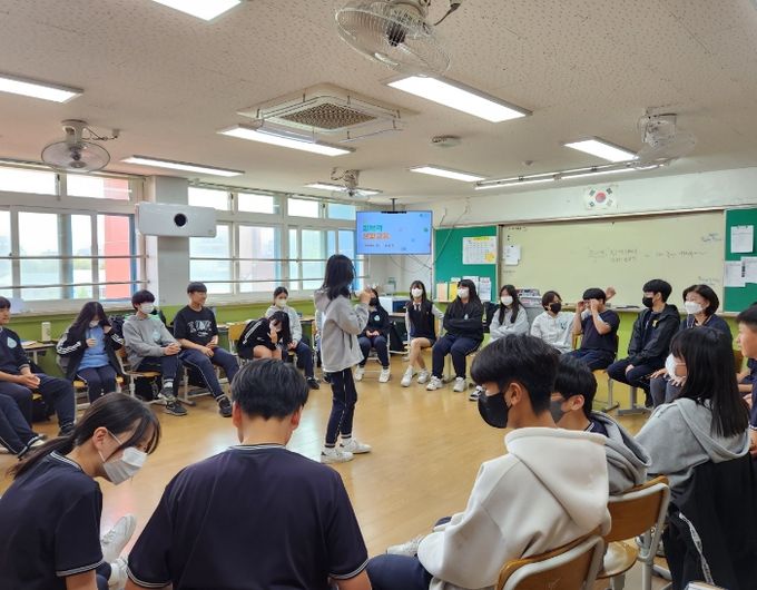 전면 등교 이후 학교생활 부적응과 사회성 부족으로 어려움을 겪는 1, 2학년 전체 학생들을 위해 회복적 생활 교육 집단상담 프로그램을 운영했다. 공동체 놀이를 통해 서로를 포용하고 자기를 표현하고 친구의 이야기를 경청하는 서클 활동을 통해 공감과 경청의 행복한 학급 만들기 프로그램을 운영하여 행복한 소래중학교를 열어가고 있다.