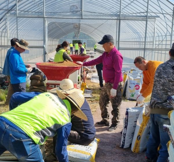 (플러스인뉴스) 도척면 농업경영인회는 지난달 28일 유정리에 위치한 공동육묘장에서 예비 못자리 설치 행사를 진행했다.