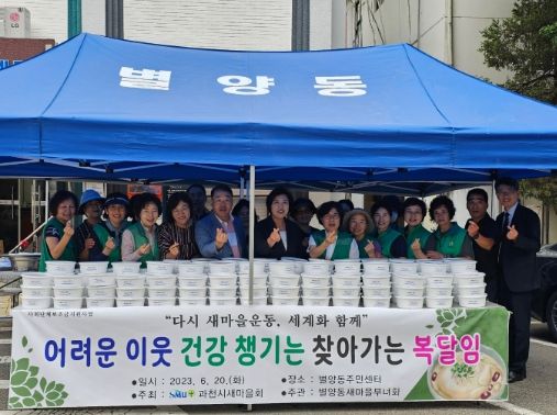 (플러스인뉴스) 과천시 별양동 새마을부녀회는 지난 20일 별양동주민센터 뒷마당에서 초복을 앞두고 건강한 여름나기를 기원하는 마음으로 복달임 행사를 열었다.