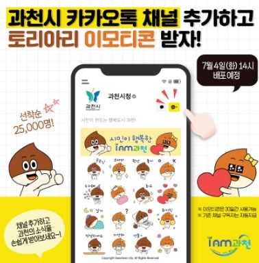 (플러스인뉴스) 과천시는 공식 마스코트인 ‘토리’와 ‘아리’ 캐릭터를 이모티콘으로 제작해 7월 4일 오후 2시부터 시 공식 카카오톡 채널을 통해 무료로 배포하는 이벤트를 진행한다.