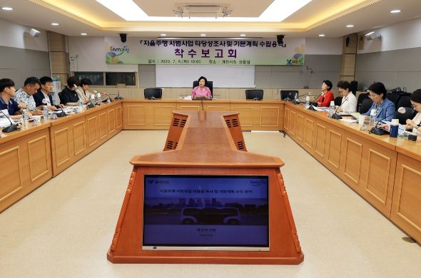 시는 지난 6일 시청 상황실에서 신계용 시장과 관계부서 공무원, 시의원, 과천경찰서 관계자 등이 참석한 가운데 ‘자율주행 시범사업 타당성 조사 및 기본계획 수립 용역’ 착수보고회를 열어 추진계획을 보고 받고 관련 논의를 진행했다.