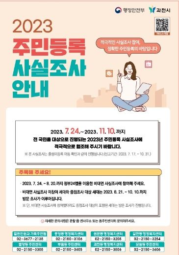 (플러스인뉴스) 과천시는 이달 24일부터 11월 10일까지 2023년 주민등록 사실조사를 실시한다.