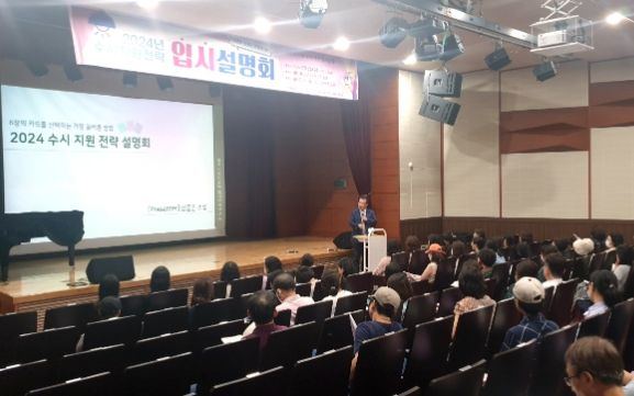 이번 설명회는 남윤곤 입시전략전문가의 ‘2024년 수시, 6가지 카드를 선택하는 가장 올바른 방법’을 주제로 한 강연으로 2시간 가량 진행됐다. 강연에서는 2024학년도 수시 분석 및 지원전략, 주요 대학 수시모집 요강, 합격사례 분석 결과를 제공하여 학부모들로부터 높은 만족도를 이끌어냈다.