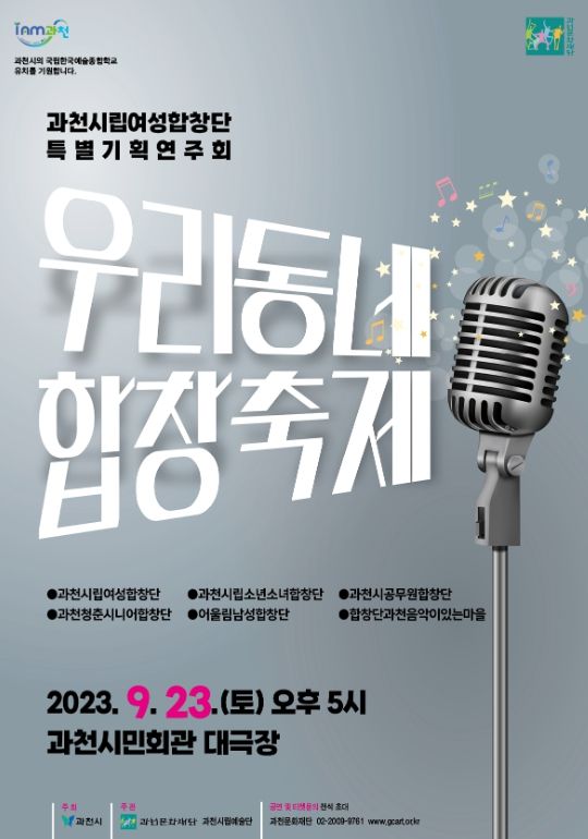 공연의 마지막 하이라이트는 ‘아름다운 나라’, ‘과천찬가’를 함께 모여 부르는 연합 합창으로 모든 합창단이 하나 되어 합창음악의 아름다움을 선보인다.