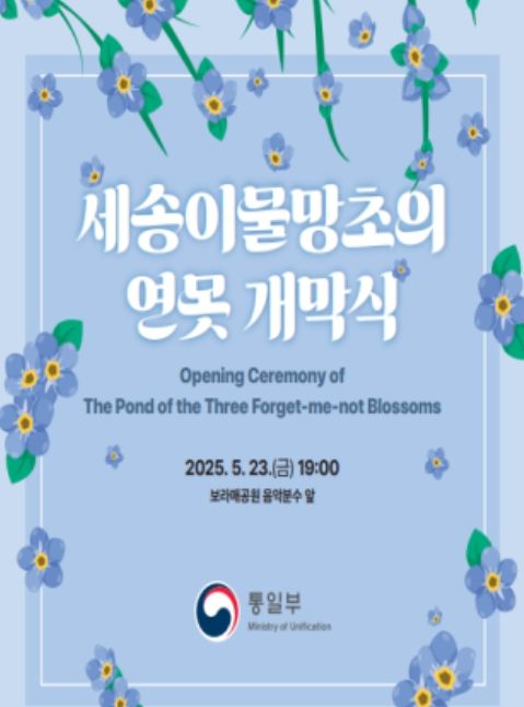 (플러스인뉴스) 통일부는 “세송이물망초의 연못” 개막 행사를 5월 23일 저녁 7시, 서울 보라매공원 연못 음악분수 앞에서 진행한다.