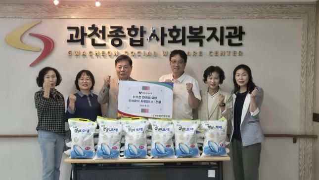 (플러스인뉴스) 과천시 별양동 체육회는 지난 22일 추석 명절을 앞두고 과천종합사회복지관에 쌀 4kg(28포), 약 50만 원 상당의 햅쌀을 기부했다고 밝혔다.