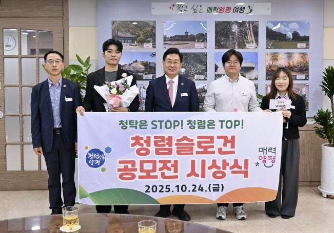 전진선 양평군수는 “청렴은 조직의 신뢰를 높이는 기본이자 지속 가능한 발전의 출발점”이라며 “이번 공모를 통해 군민과 함께 청렴 가치를 되새기고, 일상 속 실천으로 확산 될 수 있도록 지속적으로 노력하겠다”고 밝혔다.