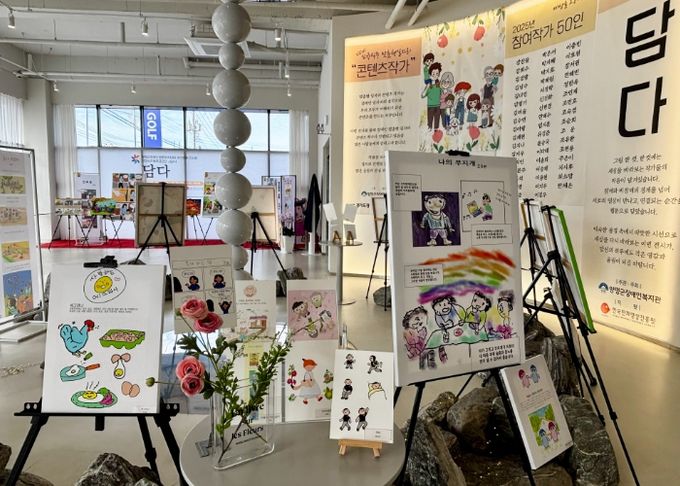 이번 전시회는 복지관 웹툰아카데미 ‘그리다, 툰’에 참여한 장애인 작가들의 창작 성과와 함께 ‘2025년 전국장애인웹툰공모전’ 수상작을 선보이며 큰 관심을 모았다. 전시 공간에는 작가들이 직접 그린 웹툰 원화, 캐릭터 시안, 팬 상품(굿즈) 등 50여 점의 작품이 전시되어 장애인의 창의력과 예술적 역량을 한눈에 볼 수 있는 기회가 됐다.