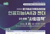 경기도여성가족재단, 20일 2차 경기여성가족미래포럼…'인공지능과 사회정책'