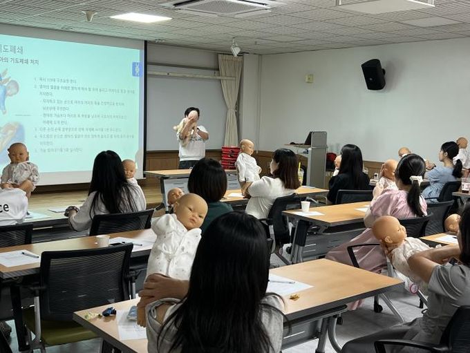 이번 교육은 출산을 앞둔 18명의 예비 부모가 참석했으며, 경기도 소방 재난본부 소속 전문 강사의 진행 아래 △아기 모형을 활용한 심폐소생술(CPR) △하임리히법 △자동심장충격기(AED) 사용법 등의 실제 시연과 참여자 실습이 병행되어 부모 스스로 체험하며 익힐 수 있는 시간이 마련됐다.