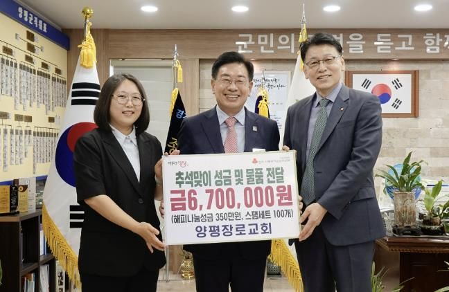 (플러스인뉴스) 양평군은 지난 23일 양평장로교회가 추석 명절을 맞아 어려운 이웃을 돕기 위해 320만 원 상당의 스팸세트 100개와 해피 나눔 성금 350만 원을 기탁했다고 밝혔다.