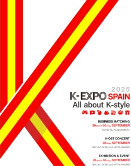 (플러스인뉴스) 문화체육관광부와 농림축산식품부, 해양수산부, 보건복지부는 한국콘텐츠진흥원, 한국농수산식품유통공사, 대한화장품산업연구원, 한국관광공사, 국립박물관문화재단과 함께 9월 28일부터 30일까지 스페인 마드리드에서 ‘2025 스페인 케이-박람회: 케이-스타일의 모든 것(K-EXPO SPAIN 2025 : All About K-Style)’을 개최한다.