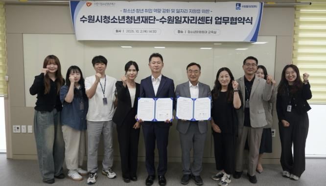 (플러스인뉴스) 수원시청소년청년재단과 수원일자리센터는 10월 2일, 청소년청년의 취업 역량 강화와 일자리 지원을 위한 업무협약(MOU)을 체결했다.