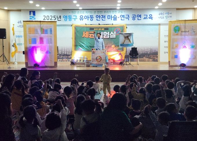 (플러스인뉴스) 수원시 영통구는 2025. 10. 13. 영통구청 대회의실에서 관내 유아를 대상으로 안전한 위생 습관을 형성하기 위한 ‘찰리박사의 세균실험실’ 체험형 안전마술·연극 공연 교육을 실시했다.