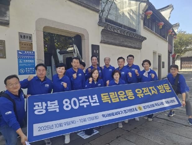 (플러스인뉴스) 광복 80주년을 맞아 중국 내 항일 독립운동 유적지를 탐방한 경기도의회 ‘독도사랑ㆍ국토사랑회’와 ‘역사바로세우기 경기연대’가 5일간의 일정을 마치며, 선열들의 숭고한 정신을 이어받아 경기도에서 올바른 역사관을 정립하고, 영토 주권 수호를 위한 활동을 더욱 강력히 펼쳐나가겠다고 다짐했다.