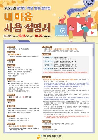 (플러스인뉴스) 경기도교육복지종합센터가 경기도교육청 소속 초 중 고등학교 학생들을 대상으로 ‘2025년 경기도 학생 영상 공모전’을 개최한다.