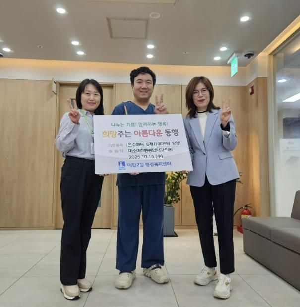 (플러스인뉴스) 지난 15일, 수원시 영통구 소재 미소마취통증의학과의원은 관내 저소득 어르신들이 따뜻한 겨울을 보낼 수 있도록 매탄2동 행정복지센터에 100만원 상당의 온수매트 8세트를 기부했다.
