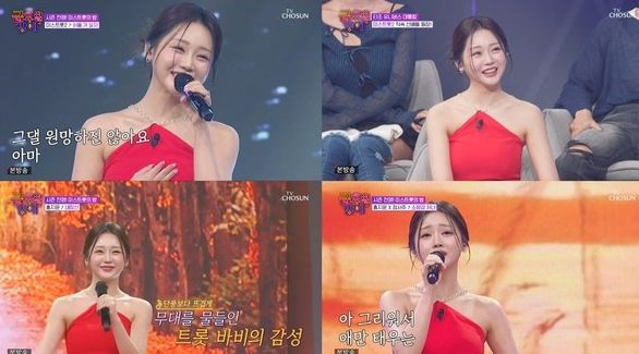 이날 '미스트롯2' 선(善) 출신 홍지윤은 레드 드레스를 입고 등장해 압도적인 비주얼과 함께 강렬한 존재감을 발산했다. 이어 '미스트롯2' 멤버들과 호흡을 맞춘 '서울 가 살자' 무대로 감탄을 자아내며 품격 있는 무대 매너를 보여줬다.