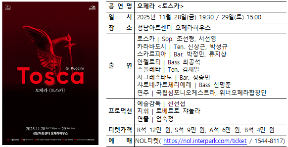 ◇ 푸치니의 3대 걸작 오페라, 11월 28일(금)~29일(토) 성남아트센터 오페라하우스 공연