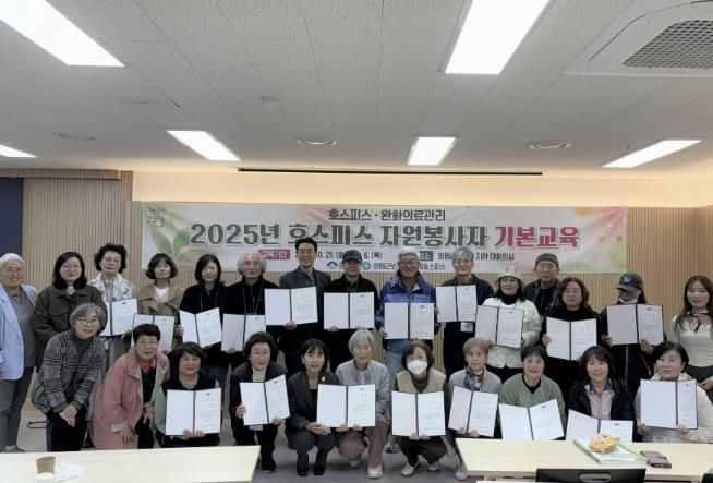 (플러스인뉴스) 양평군은 6일 ‘2025년 호스피스 자원봉사자 기본교육’을 성공적으로 마무리하고 총 21명의 수료생에게 수료증을 수여했다.