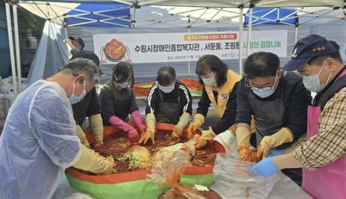 (플러스인뉴스) 수원시 장안구 조원1동은 지난 15일 사랑을 만드는 사람들 봉사회가 조원1동 취약계층을 위해 김장김치 10kg 50개를 조원1동 행정복지센터에 기부했다고 전했다.