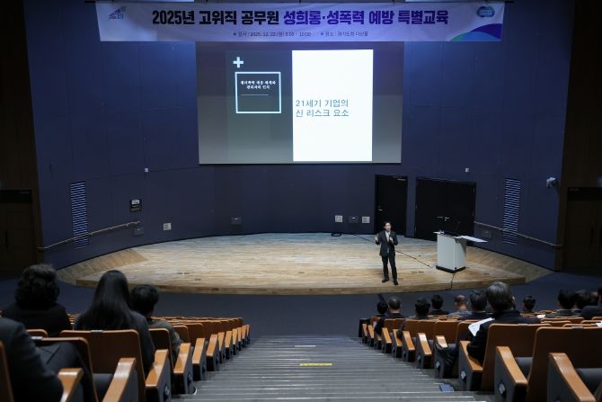 (플러스인뉴스) 경기도는 22일 경기도청 다산홀에서 김동연 경기도지사를 포함해 고위직 공무원 약 50명을 대상으로 ‘직장 내 성희롱·폭력 예방 특별교육’을 실시했다.