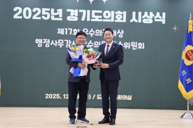 (플러스인뉴스) 경기도의회 교육기획위원회 이택수 의원(국민의힘, 고양8)과 성기황 의원(더불어민주당, 군포2)이 26일 열린 2025년 경기도의회 시상식에서 ‘2025년 행정사무감사 우수위원’으로 선정됐다.