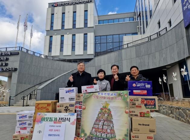 (플러스인뉴스) 샘물전원교회는 지난 1월 9일 원곡면행정복지센터를 방문해 지역 내 어려운 이웃을 위해 써 달라며 라면 30박스를 기탁했다.