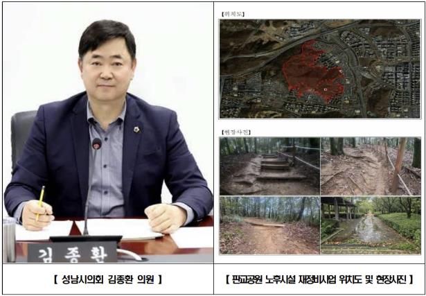(플러스인뉴스) 성남시의회 국민의힘 김종환 의원(판교·백현·운중·대장동, 예산결산특별위원장)은 분당구 판교동 판교공원 일원 노후 산책로와 바닥포장 등을 정비하는 재정비공사가 본격 추진됨을 밝혔다.