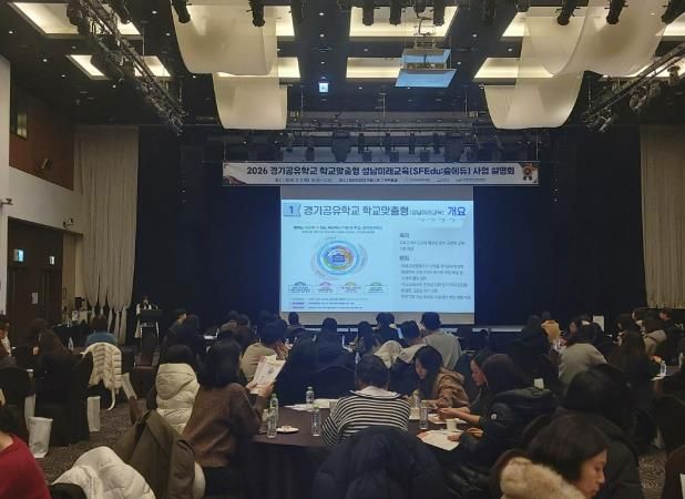 (플러스인뉴스) 경기도성남교육지원청은 5일 밀리토피아호텔에서 관내 초·중·고·특수학교 교원 및 지자체 관계자 등 300여 명이 참석한 가운데 ‘2026 경기공유학교 학교맞춤형 성남미래교육(숲에듀) 사업설명회’를 개최했다.