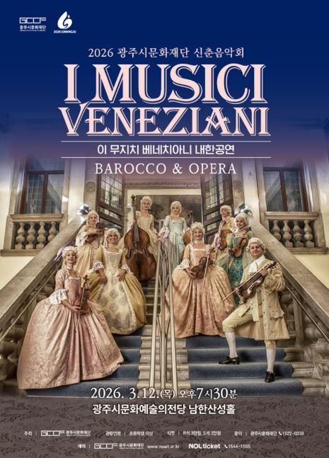(플러스인뉴스) (재)광주시문화재단은 2026년 신춘음악회로 이탈리아 베네치아니를 기반으로 활동해온 바로크앙상블 〈이 무지치 베네치아니(I Musici Veneziani) 내한공연 – Barocco & Opera〉를 개최한다. 이번 공연은 베네치아 황금시대의 음악과 문화를 무대 위에 생생히 재현하며, 관객들에게 클래식을 통한 특별한 시간여행을 선사할 예정이다.