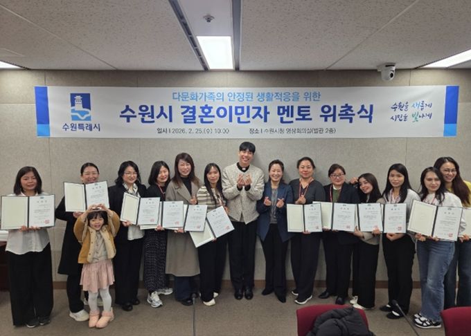 (플러스인뉴스) 수원특례시가 25일 시청 영상회의실에서 ‘2026년 결혼이민자 멘토 위촉식’을 열고 선배 이민자 멘토 15명을 위촉했다.